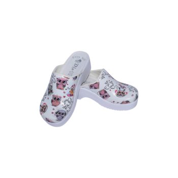 Saboti medicali anatomici cu platforma ,design fluturi ,piele ecologica,culoare alba-06