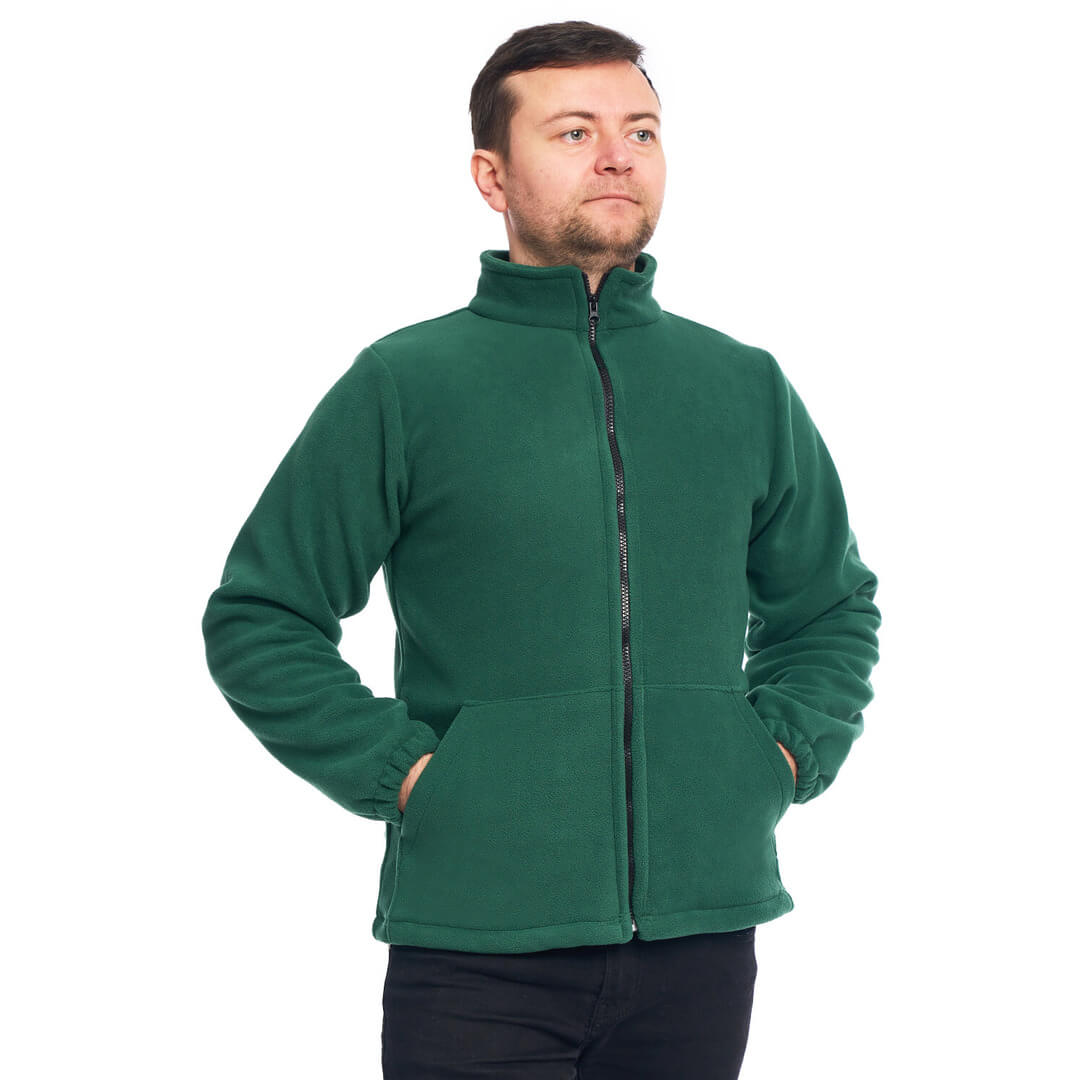 Jacheta Fleece Polar Verde Inchis , pentru munca si acasa, model Unisex , confectionat cu grija pentru detalii, din poliester fara mâneci, foarte moale si confortabil. Este foarte ușor de purtat, nu se deformează, se poate spăla atât manual cât și în mașină de spălat fară se scămoșeze. Material antipilling 300 gmp, 100% poliester de calitate superioară.
