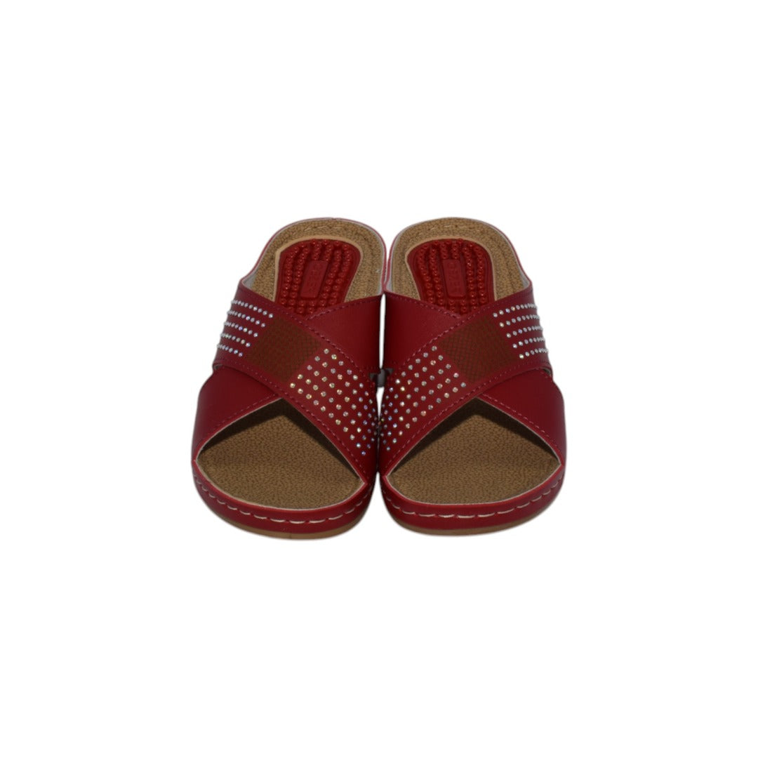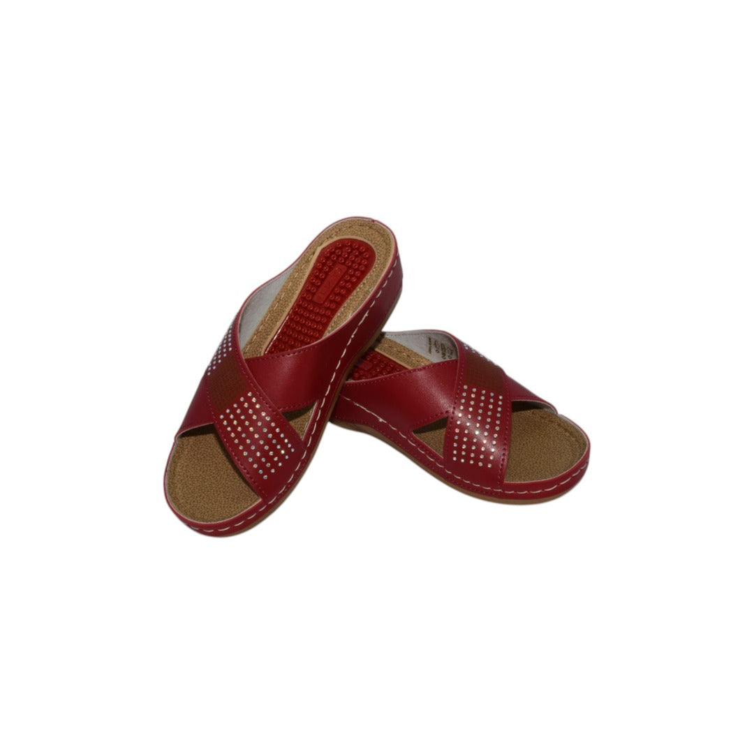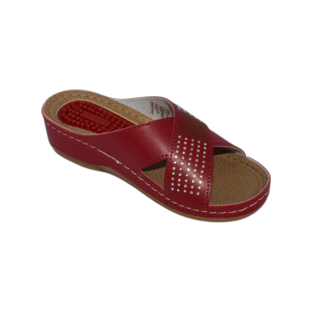 Alege confortul suprem cu acești papuci medicali ortopedici, perfecți pentru purtare zilnică, acasă sau la serviciu. Modelul vibrant adaugă o notă de eleganță, în timp ce baretelor late încrucișate le sunt aplicate detalii strălucitoare cu pietre decorative pentru un plus de stil.
