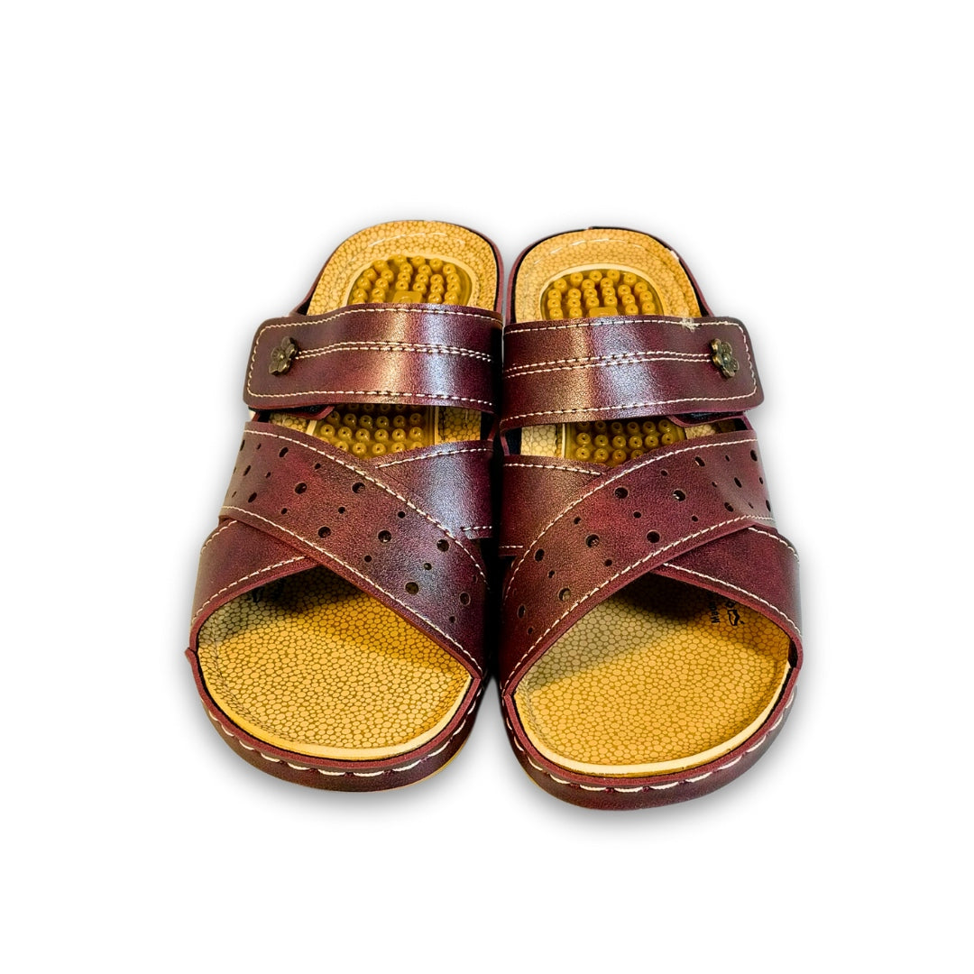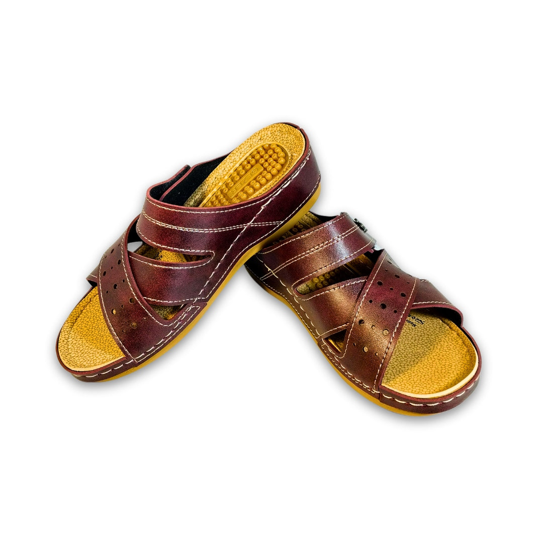 Papuci anatomici ultra lejeri,piele ecologica,taloneta masaj,culoare BORDO- 14572