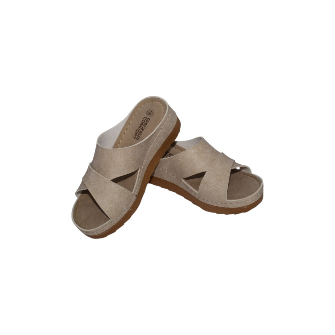 Alege confortul și eleganța într-un singur model cu acești saboti dama bej cu design încrucișat – perfecți pentru plimbări, muncă sau timp liber.