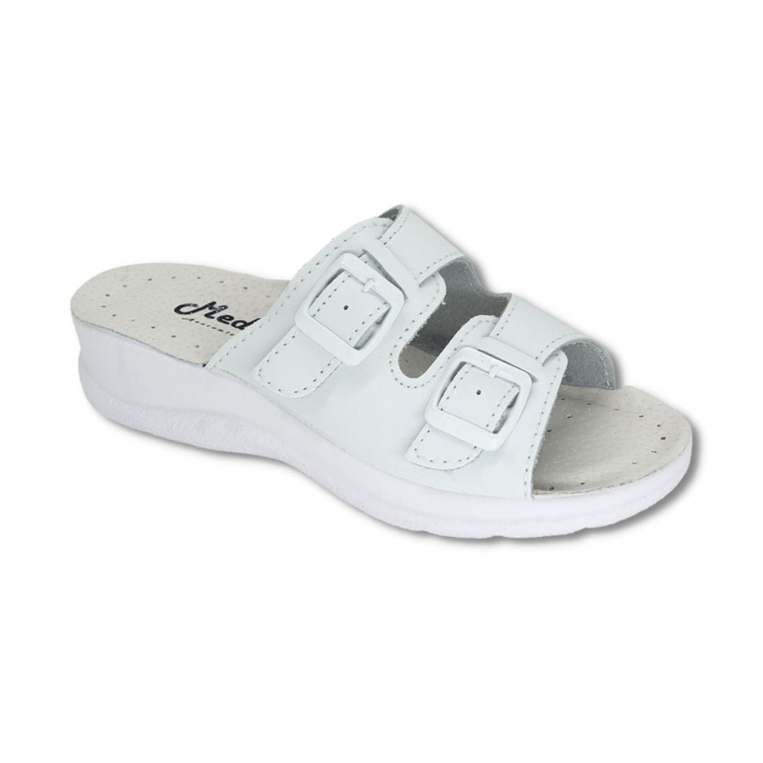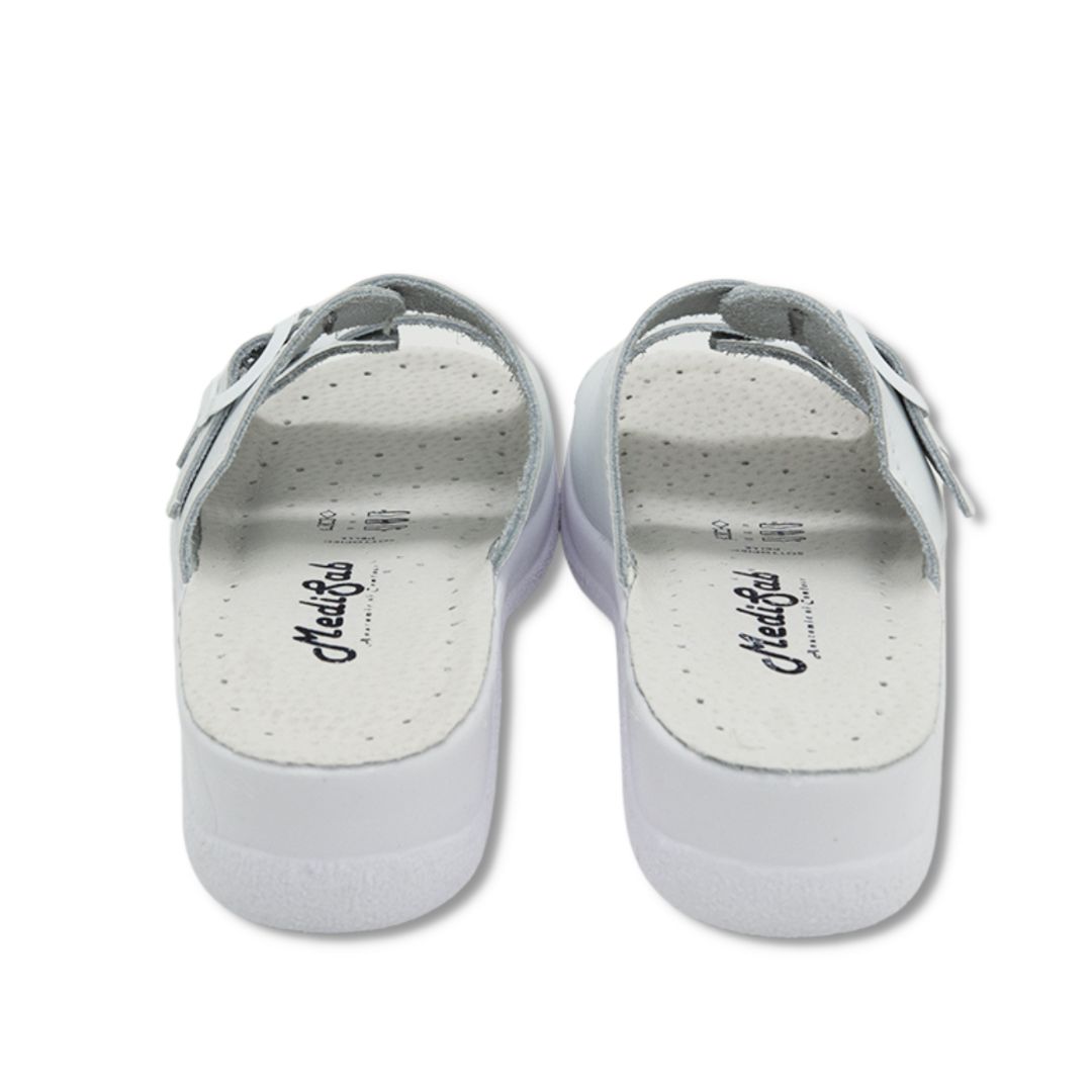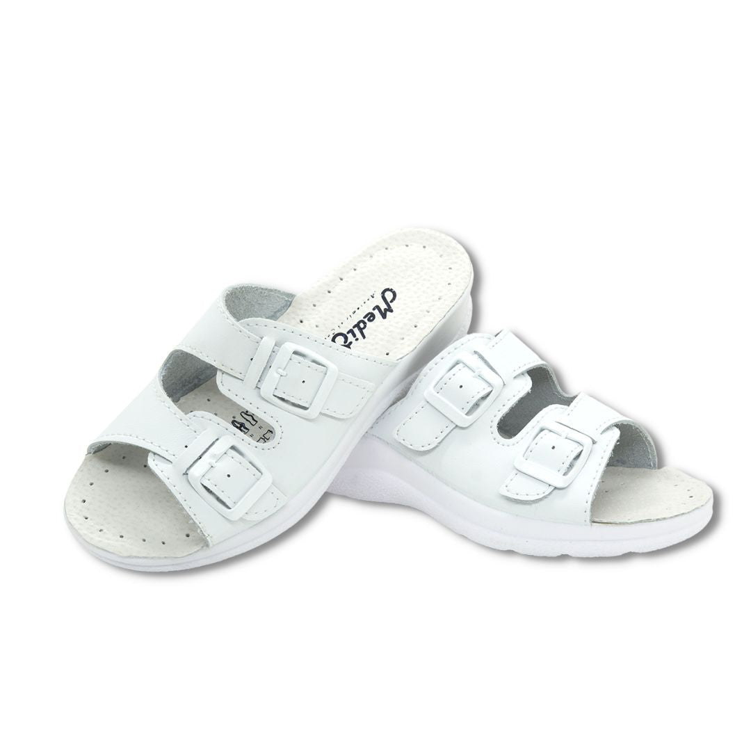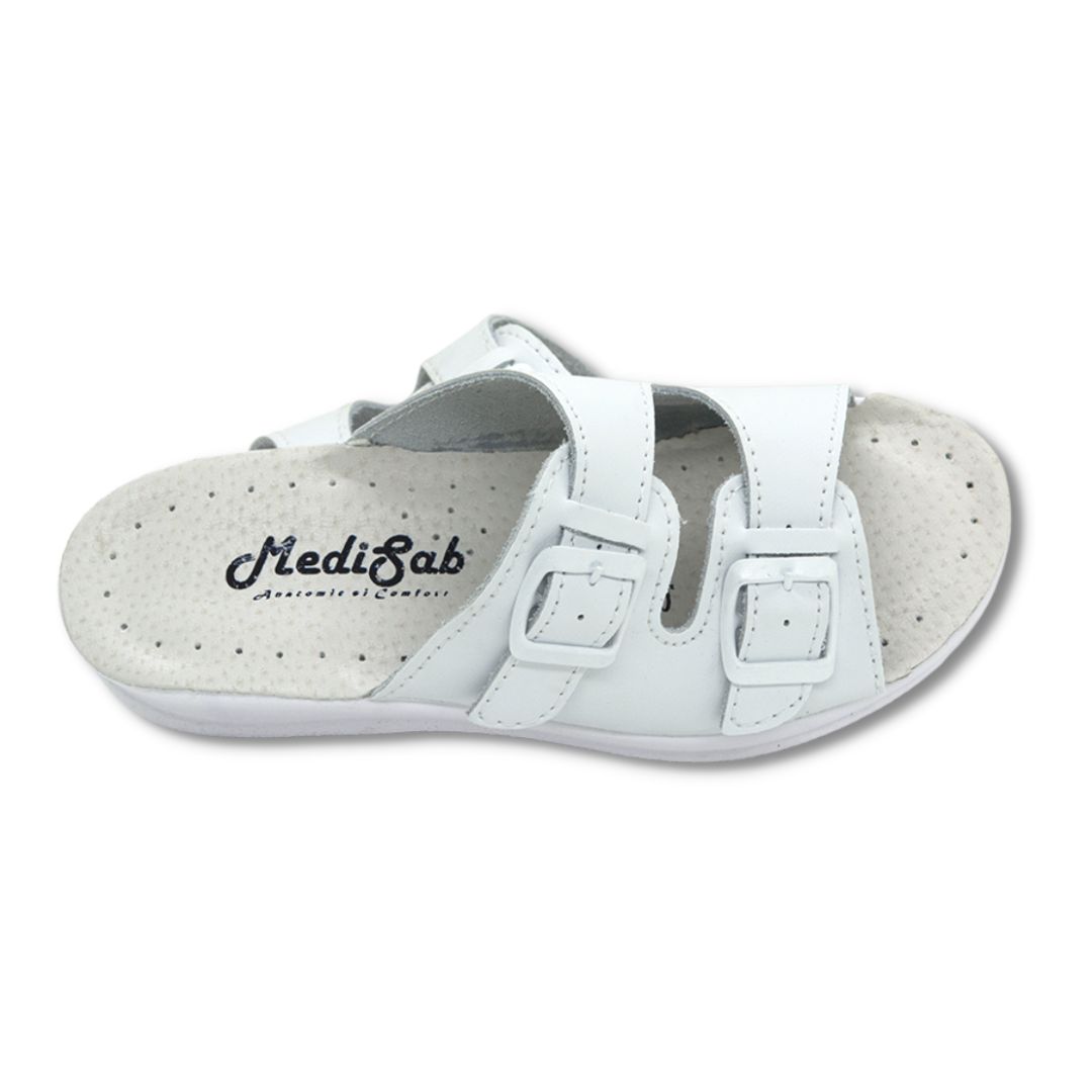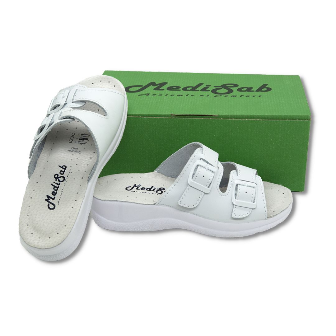 Papuci medicali albi din piele naturală cu barete reglabile – Model 12F