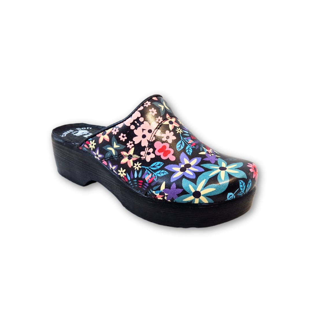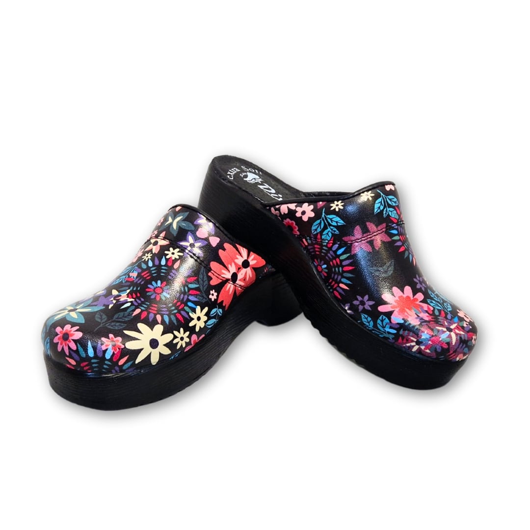 Acest sabot medical combină confortul și stilul, oferind un design floral delicat pe un material ușor și durabil din piele artificială. Platforma robustă, albă, asigură stabilitatea și o excelentă pe toate zilele. Interiorul este prevăzut cu un strat de burete cu memorie, care se adaptează formei piciorului pentru un confort optim. Talpa este dotată cu inserții verzi anti-alunecare, asigurând aderență superioară pe diverse suprafețe, ideală pentru mediile profesionale .