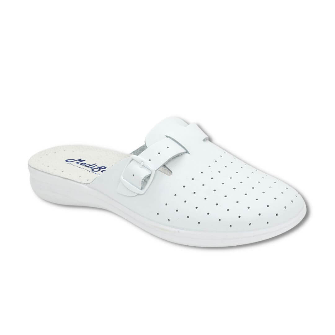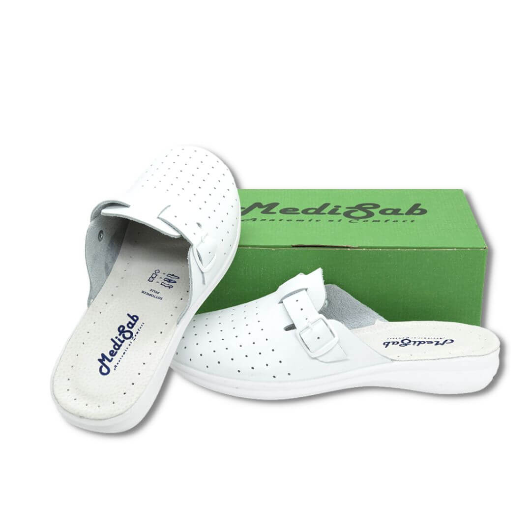 Alege un partener de încredere pentru zilele lungi la locul de muncă. Acești saboți bărbătești din piele naturală sunt ideali pentru profesioniștii din domeniul medical și nu numai, oferind confort susținut și aspect clasic.