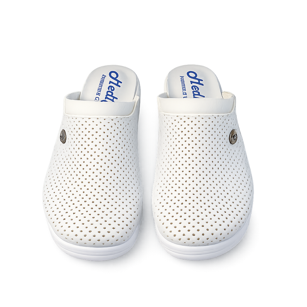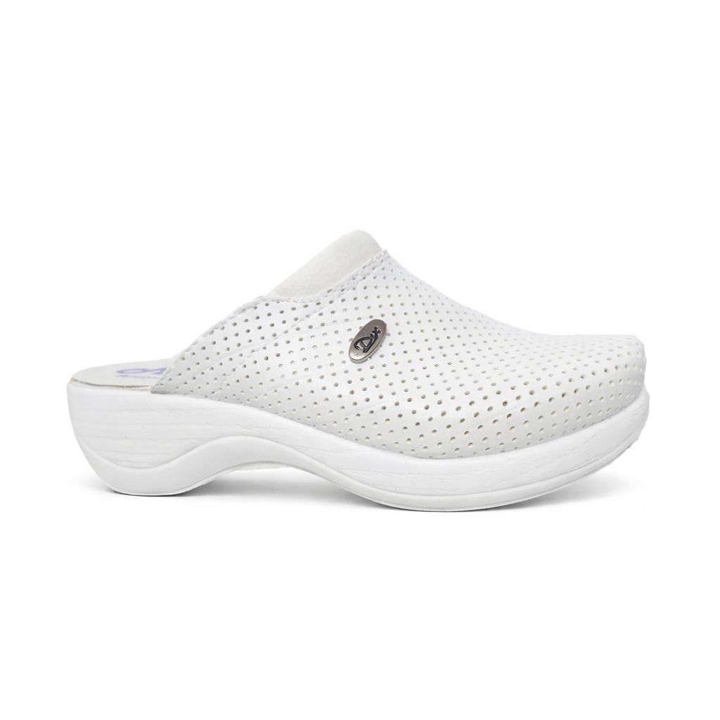 Talpa ergonomică, ușoară și stabilă ajută la un mers relaxat și sigur, fiind ideală pentru mediile profesionale unde confortul este esențial. Designul simplu, în culoare albă, completează perfect uniforma medicală și oferă un aspect curat și profesional.
