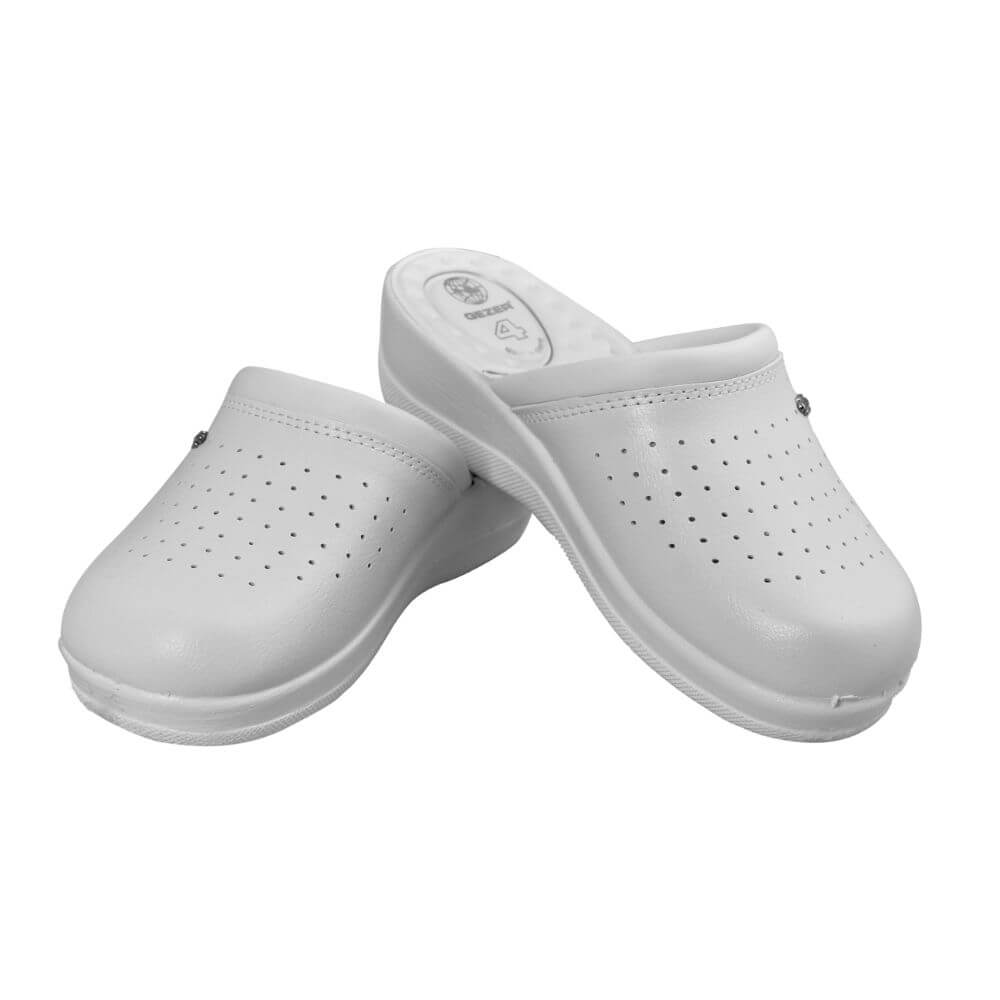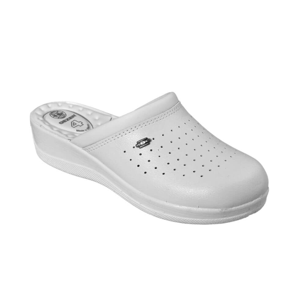 Papuci medicali albi din piele sintetică – Confort și stil pentru profesioniști