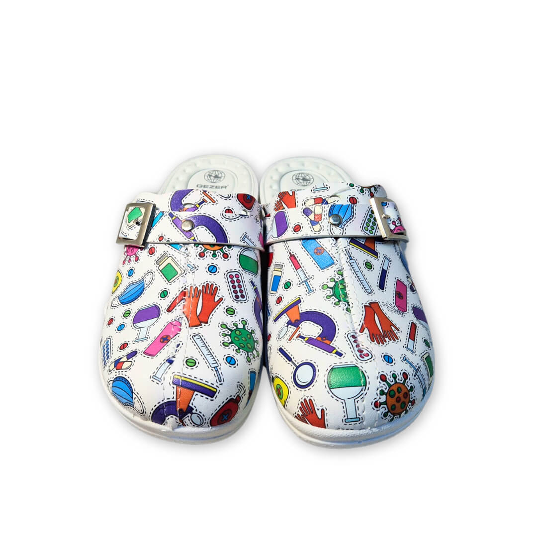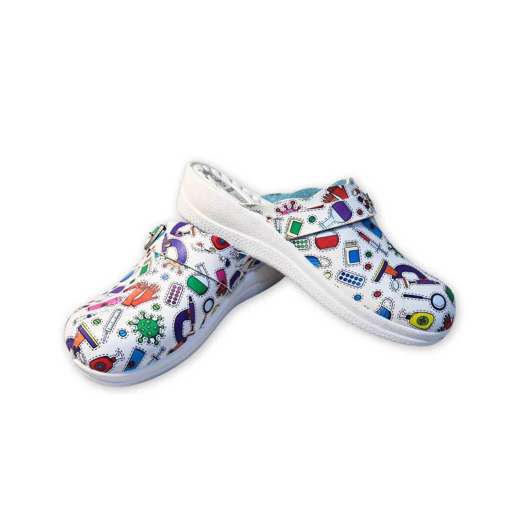 Cu un design vesel și funcțional, acești saboți sunt alegerea ideală pentru cei care își doresc atât confort, cât și un strop de personalitate în uniformă.